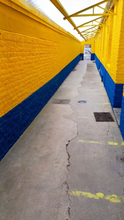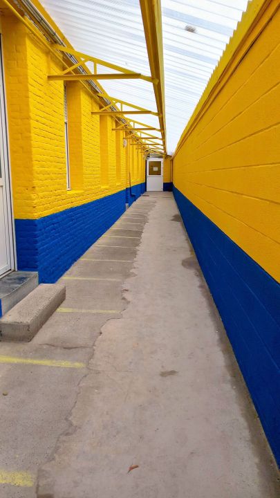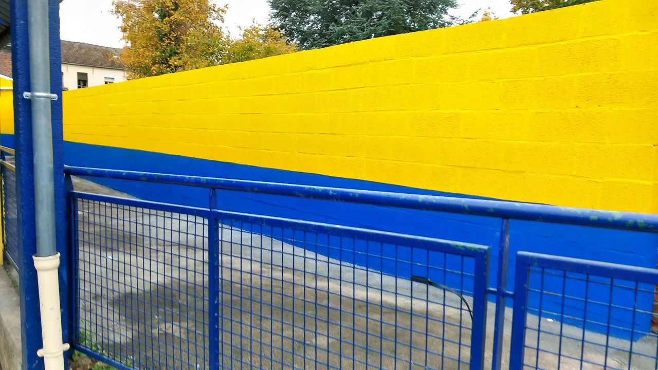 Les enfants ainsi que l'équipe pédagogique ont eu l'agréable surprise de découvrir le tout nouveau mur aux couleurs "flashy" : bleu et jaune.